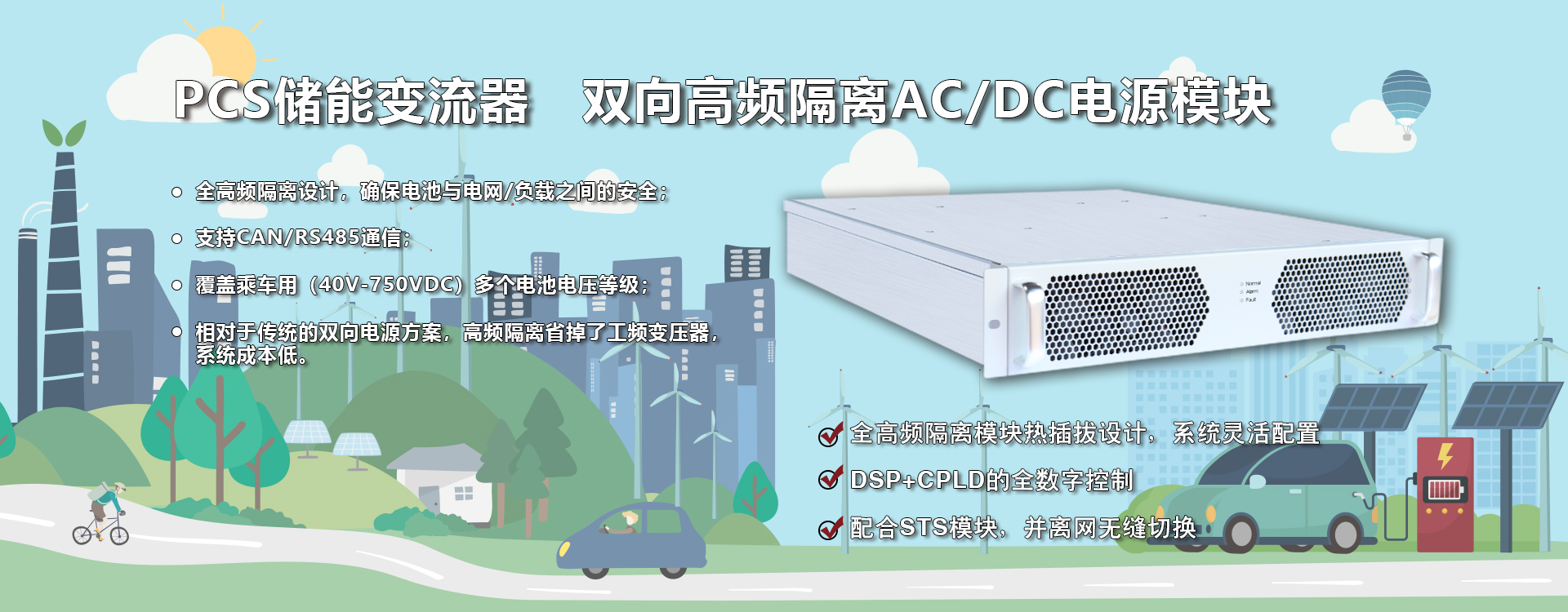 三相五線制(3W+N+PE),支持離網(wǎng)不平衡負載; 配合PCS模塊,可實現(xiàn)并離網(wǎng)無縫切換,確保重要負載不間斷供電; 模塊化設計,安裝與維護簡單; 模塊結(jié)構緊湊,功率密度高。